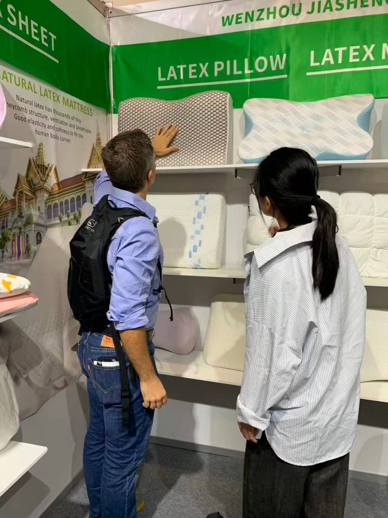 Di Pameran Tidur Dubai ini, kami merasa terhormat bisa menunjukkan bantal kami yang berfokus pada tidur kepada pengunjung dari seluruh dunia. Kami berdedikasi untuk menghadirkan dua bantal terlaris di pasaran: thebantal lateks alamidan bahan cerdas modernbantal busa memori. Sifat lateks yang cepat pulih dan anti alergi sangat disukai oleh para penggemar lateks. Sementara itu, busa memori yang paling pas dapat memberikan tidur nyenyak. Komunikasi mendalam kami dengan pelanggan di lokasi membuat kami merasakan pengejaran mereka terhadap bantal. Kami sangat yakin bahwa memberikan pilihan yang dipersonalisasi untuk berbagai kebiasaan tidur adalah kunci kualitas tidur.
